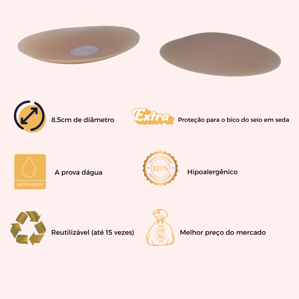 Tamanho ideal: 8,5 cm de diâmetro, cobrindo perfeitamente a área do mamilo.